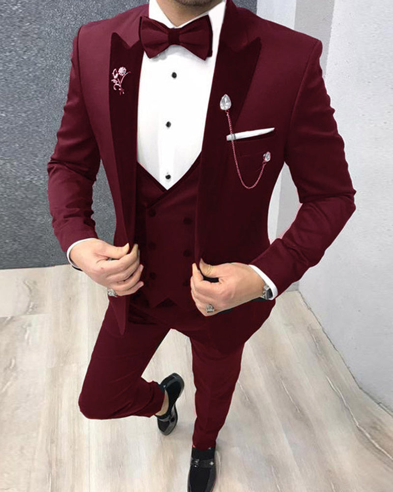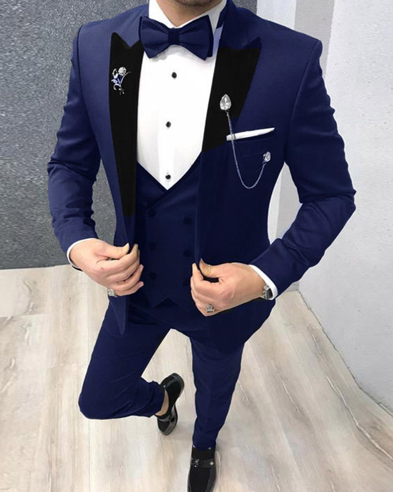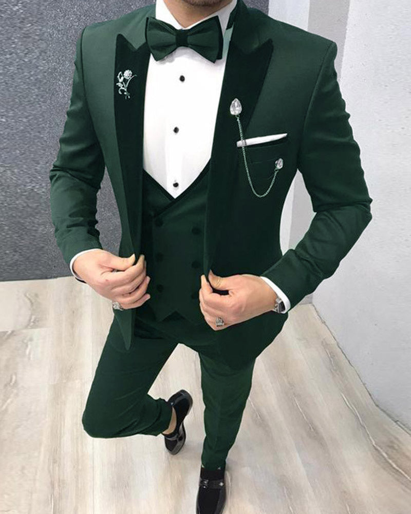 3 Pieces Slim Fit Peak Laple Black Velvet Wedding Tuxedos Groom Suits Costume Pour Hommes CB01221