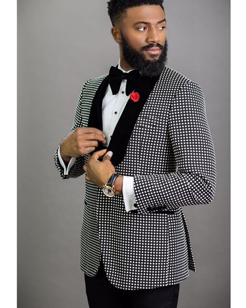 Black and White Dot Men's Blazer Suits 2 Pieces(Blazer+pants) ,Formal Dress Men Outfits CB0727