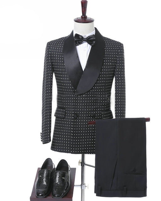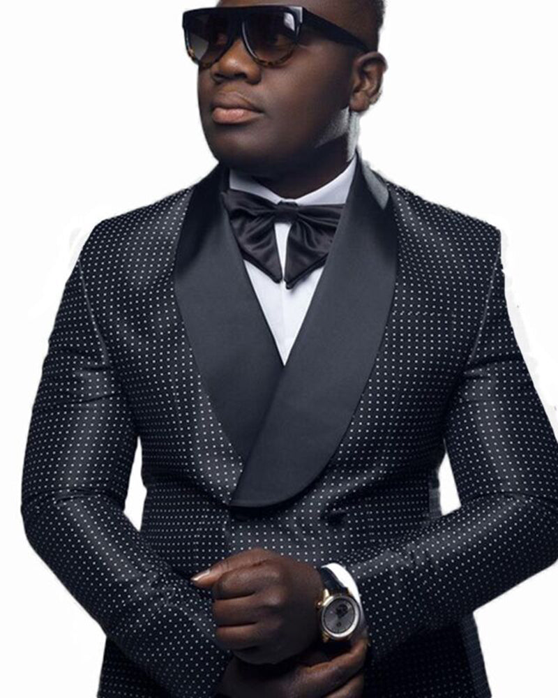 Black Double Breasted Wedding Groom Suit With Pants Tuxedos For Men Prom Suit (Jacket+Pants+Bow)