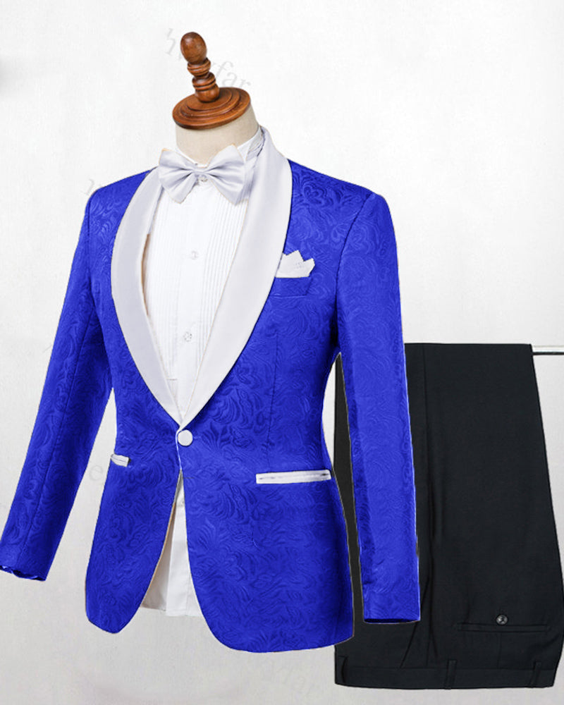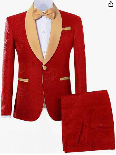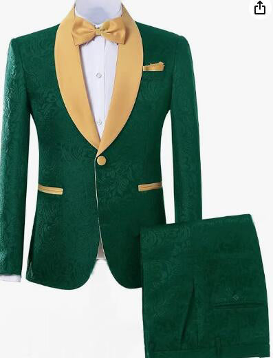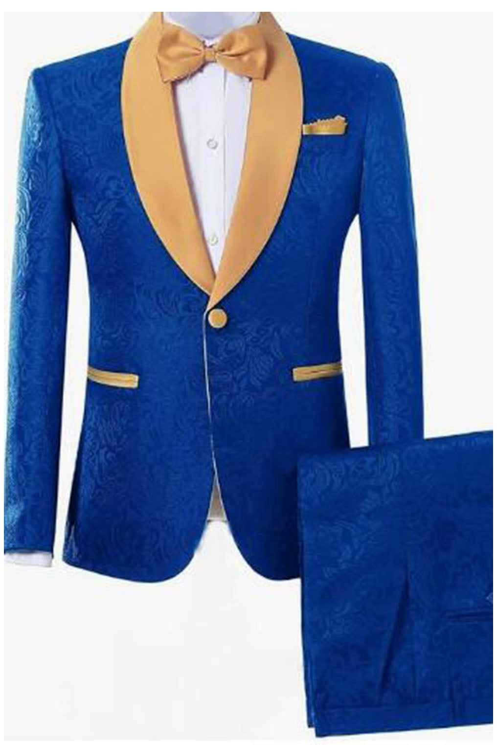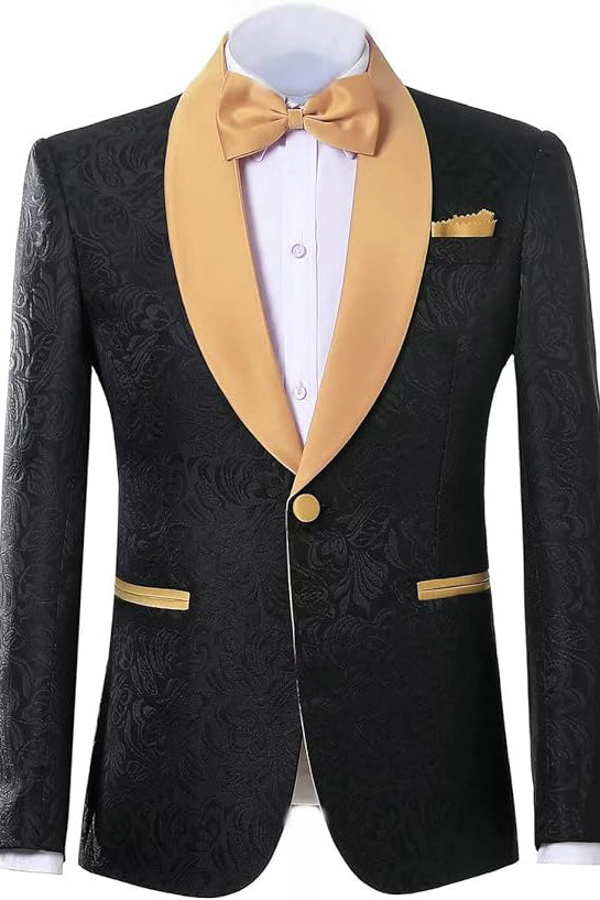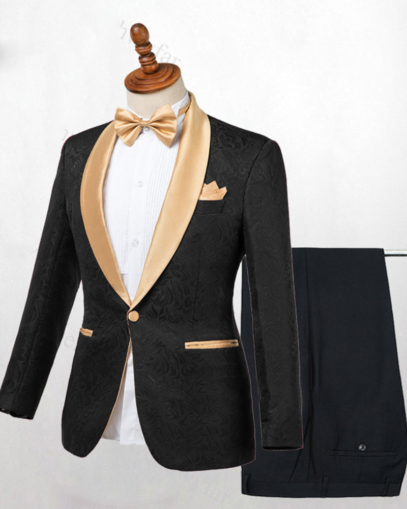 Black Jaquard Wedding Suits Blazer with Gold Shawl Lapel 2 Pieces Groom/Groomsmen Formal Dress men out fit
