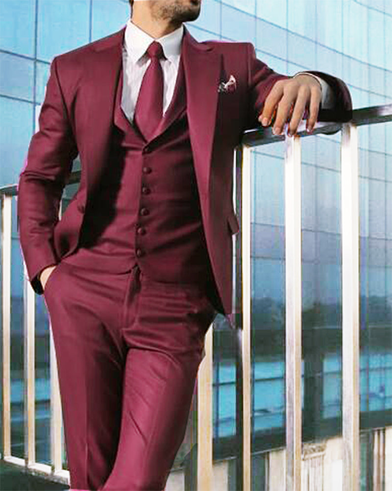 Burgundy/Dark Red Three Piece Wedding /Party Suit for Men Notch Lapel CB 35094