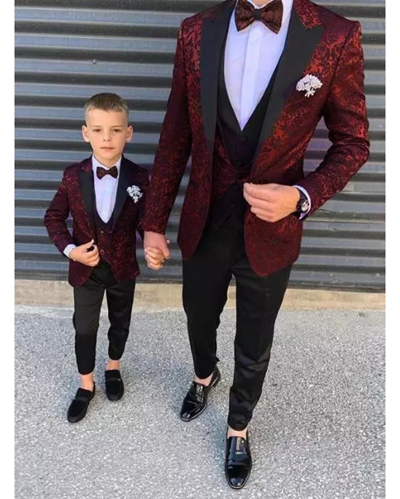 Burgundy Floral Pattern jacquard 3 piece Tuxedo Suit for Wedding CB2336