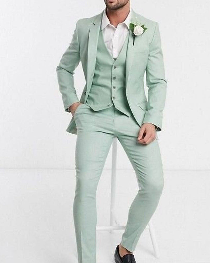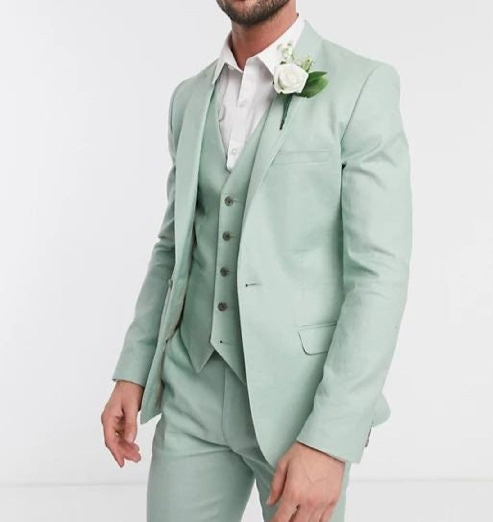 Classic North Lapel Sage Green Prom Suits for Men 3 Pieces Jacket+Vest+pants CB2533
