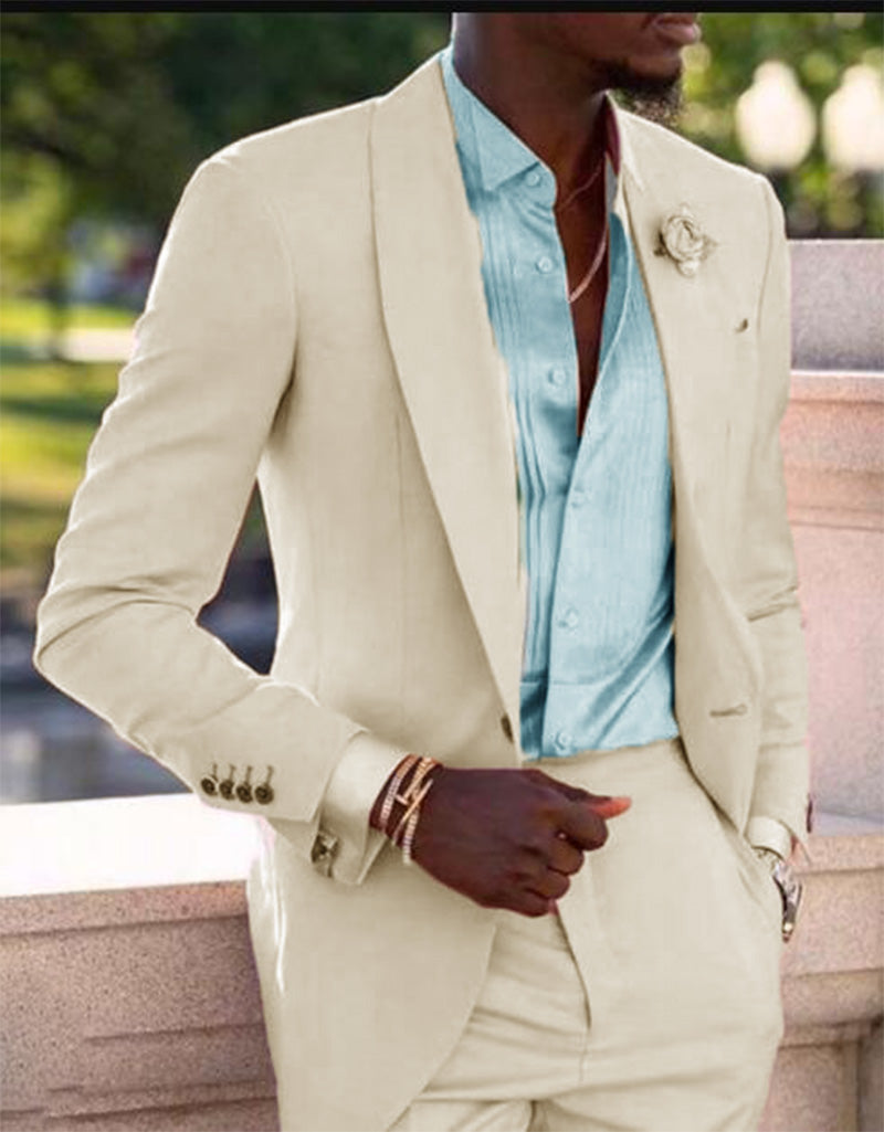 Cream Summer Wedding Suits for Men 2 Pieces Groomsmen Jacket +pants CB34137