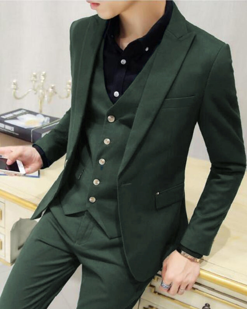 Dark Green 3 Pieces Men's Prom Suits Peak Lapel One Button Formal Wedding Dress Suits Dinner Jacket CB08071