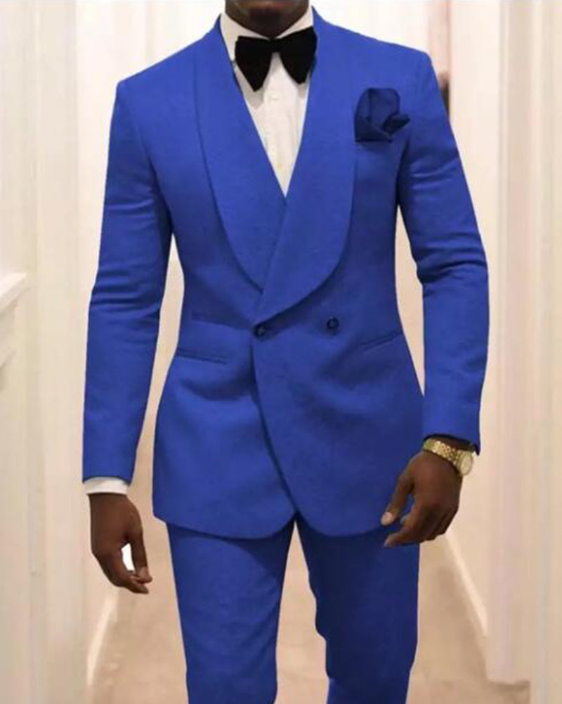 Double Breast Shawl Lapel Royal Blue Suits for Men,Black Men Formal Dress Suits B0724