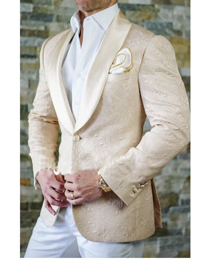 Jacquard Beige Wedding Groom Suits 2 Pieces Tuxedo Blazer Dinner Jacket CB08086