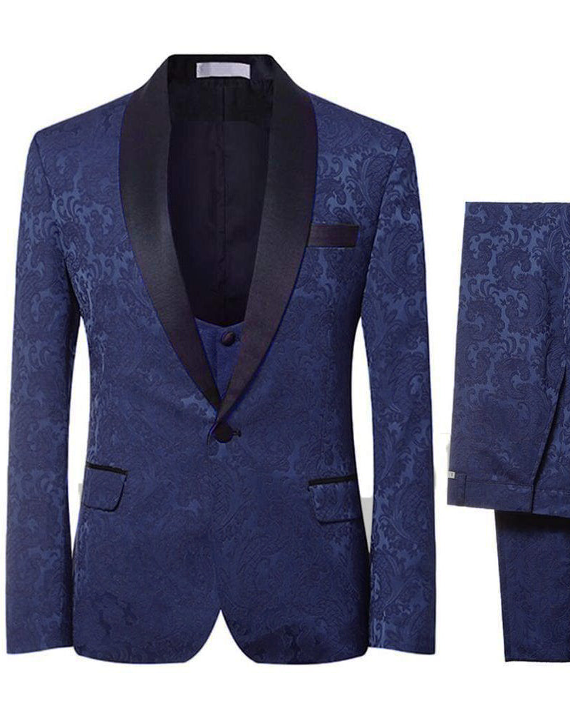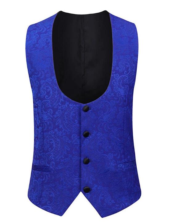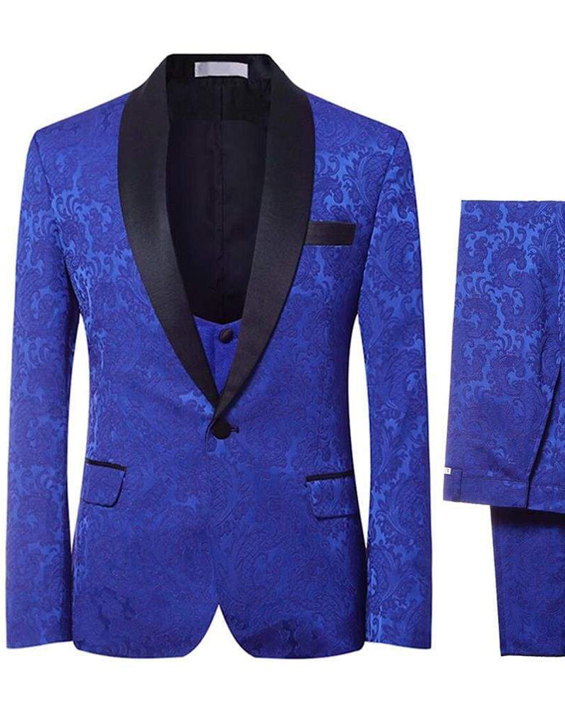Royal Blue Jacquard 3 Pieces Slim Fit Shawl Lapel Wedding Tuxedos for Men Party Formal Suits CB0429