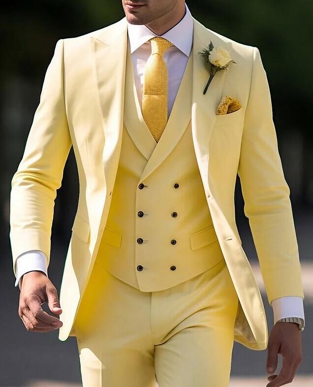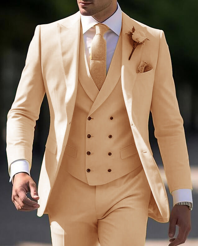 Slim Fit 2024 Peach color Suits for Men ,Peach/yellow Party Suits,Peach Wedding Suits 3 Pieces CS24171