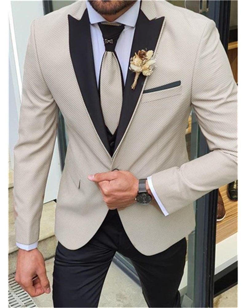 Slim Fit Beige Wedding Tuxedos with Black Satin Lapel ,Men Groom Suits ,Prom Suits 2024 CB01120