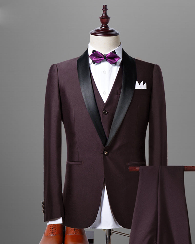 Slim Fit Solid Color Dark Maroon /Grape Wedding Tuxedos for Men,3 Pieces Dress Suits CB0731