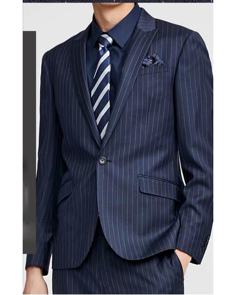 Stripe Navy Blue Business Men Dress Suits Fromal Dinner Jacket 2 Pieces (jacket+pants)