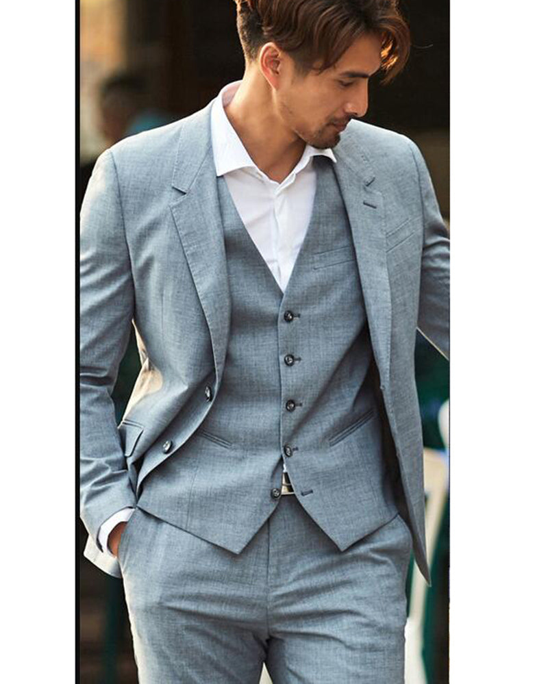 Tailor Made 3 Pieces Light Blue Summer Wedding Party Suits for Men CB3423