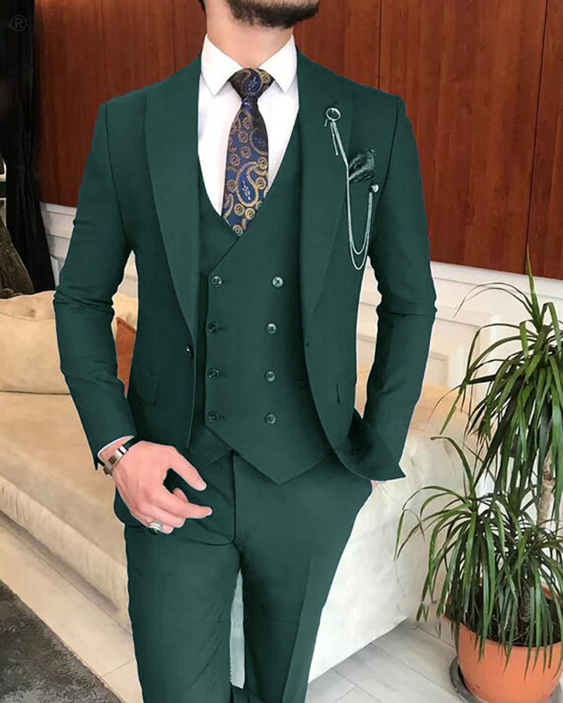 Tailor Made Three Pieces Peak Lapel Weding groomsmen Suits NavyBlue Jacket+vest +pants CB1226