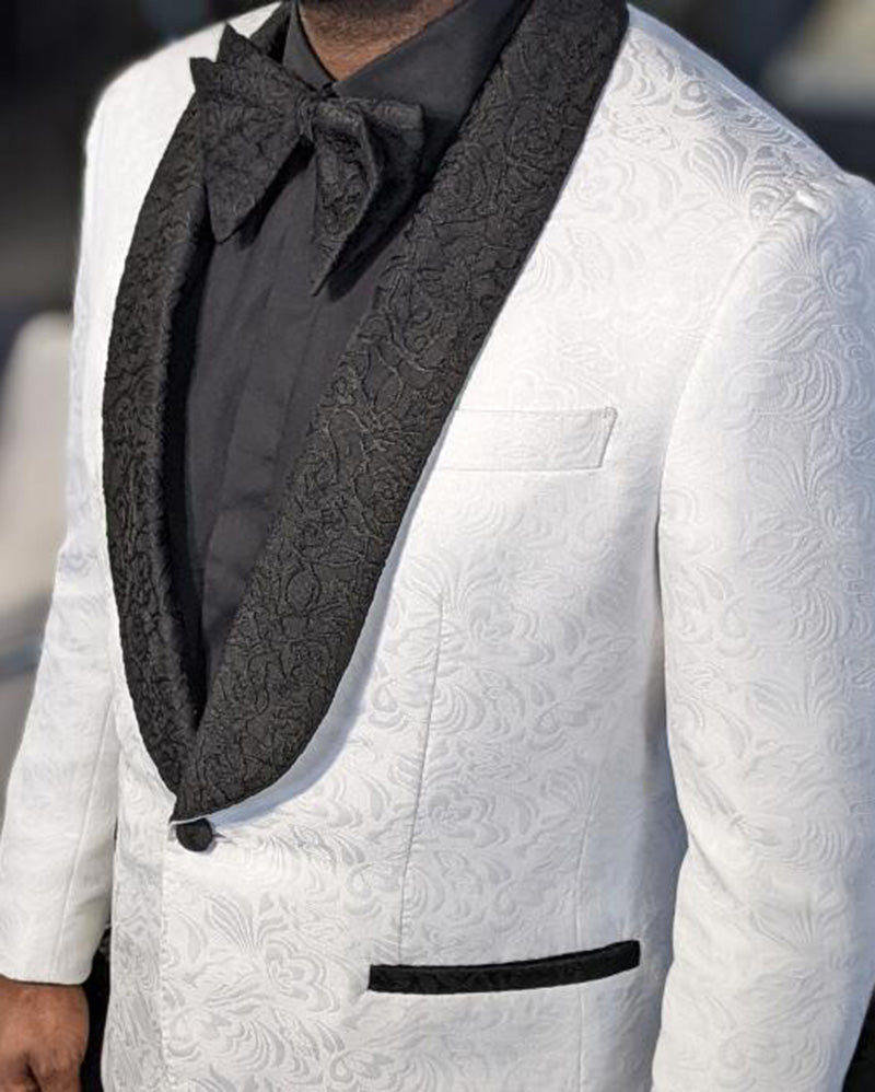 White Floral Pattern Wedding Tuxedo 2 Pieces Dinner Jacket+Pants CB3412