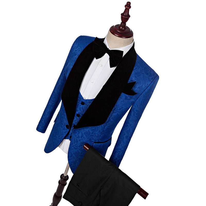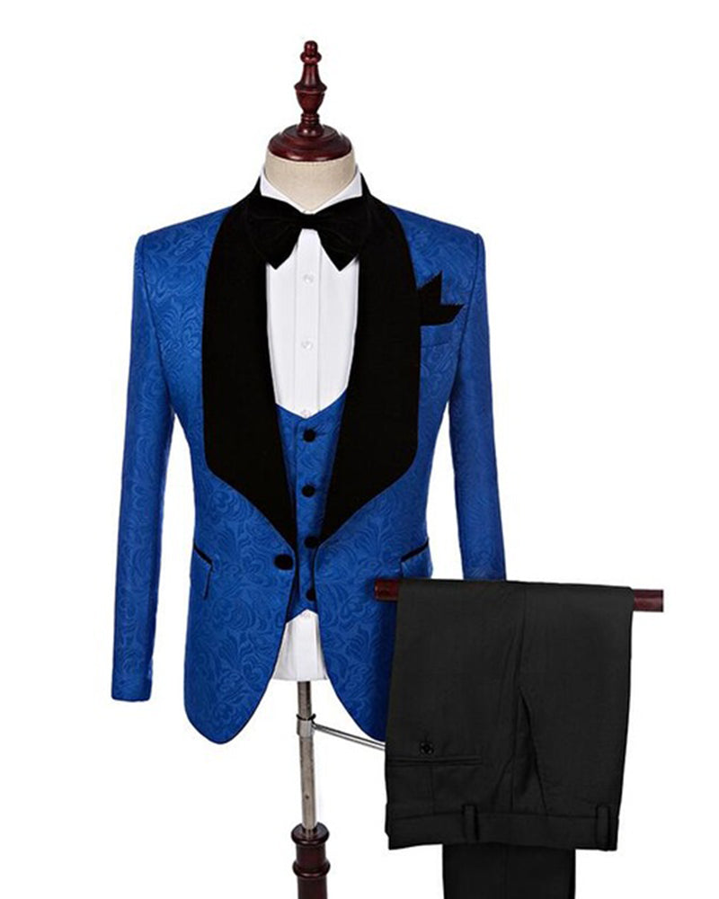 WX126 Royal Blue Shawl Lapel Men Wedding Groom Suits 3 Pieces(Jacket+pants+vest)