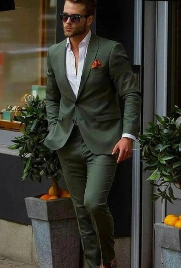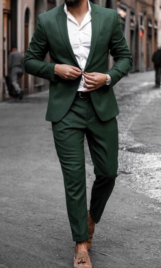 2 Pieces Dark Green Prom Suits Groomsmen Wedding Suit for Men CS1010