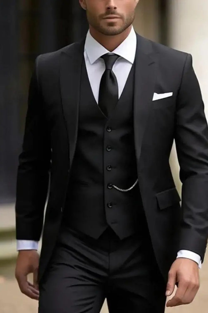 Black Men's Suits Three Pieces Groomsmen Outfits Jacket +Pants +vest CS912