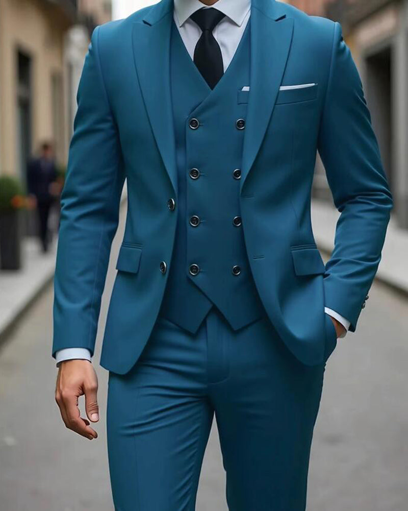 Classic Wedding Tuxedos Casual Solid Suits Slim Fit 3 Pieces Groomsmen Suit Male Formal Business Men Clothing(Jacket+Vest+Pants)CS1120