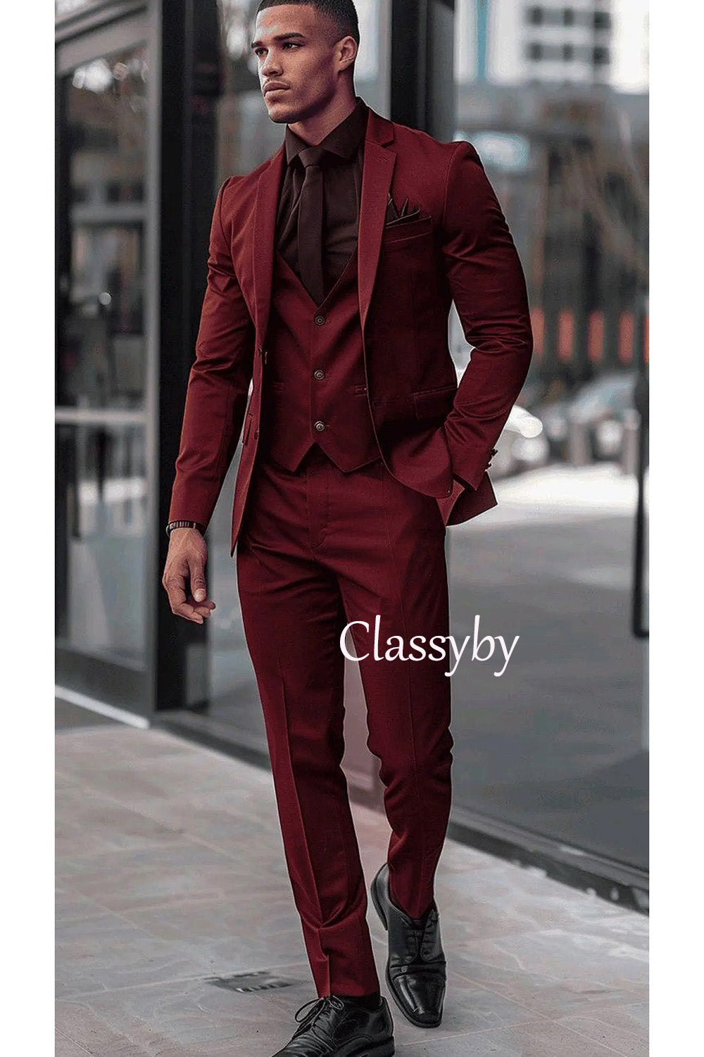 Slim Fit Fashion Dark Red Prom Suit 2026 CS1227