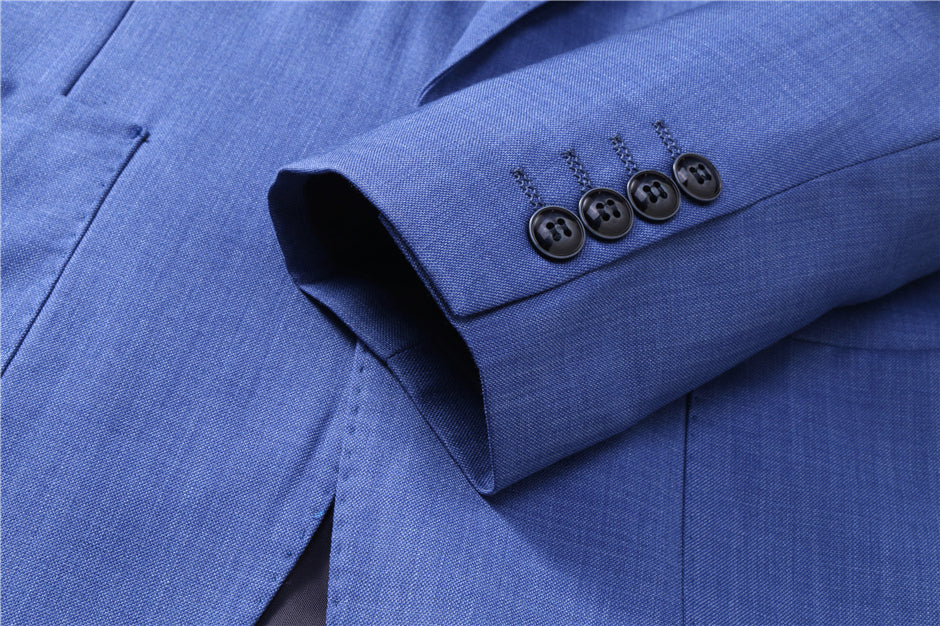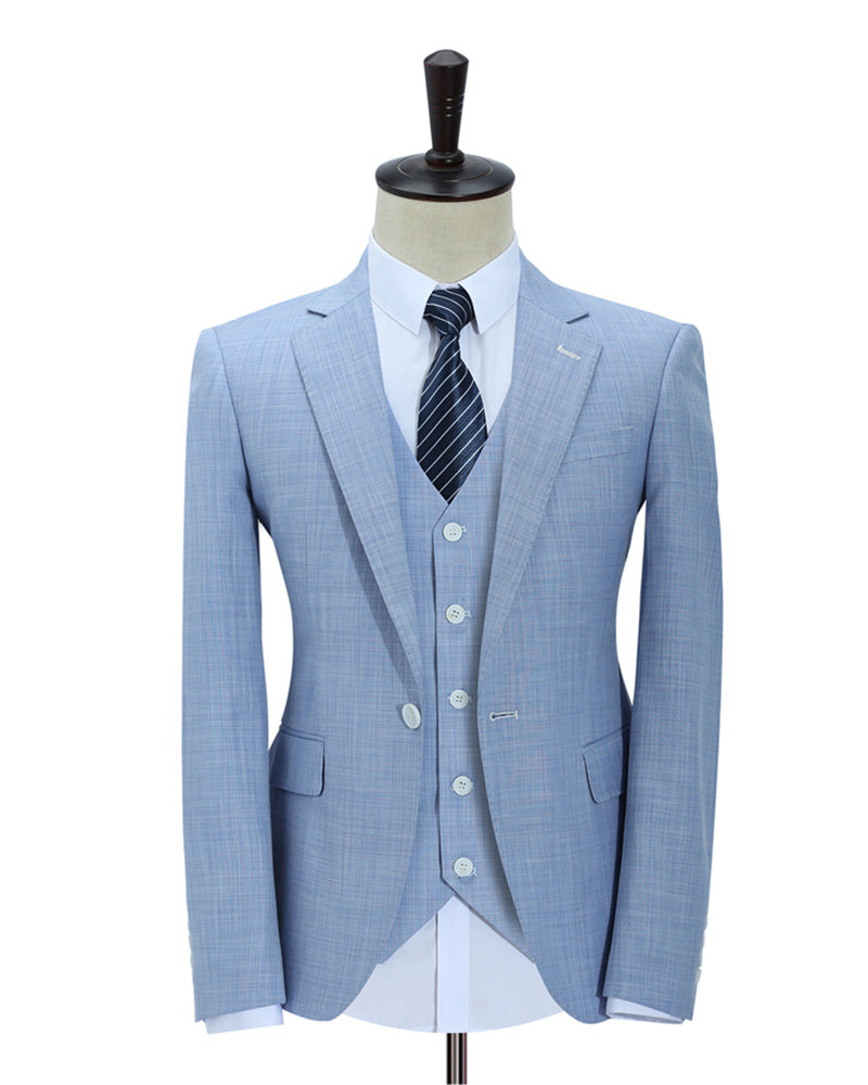 CB4433 Light Blue/Royal Blue Summer Wedding Tuxedos Men Linen Suits Groomsmen Outfits 3 Pieces