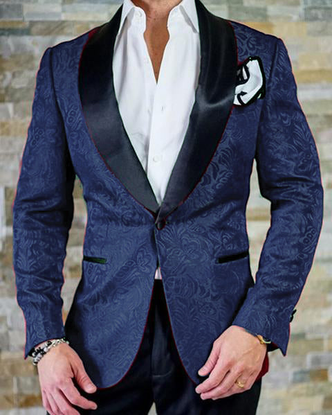 Navy/Burgundy/White Jacquard Blazer for Men Groom Suits Tuxedos for Wedding 2 Pieces (Jacket+Pants£©