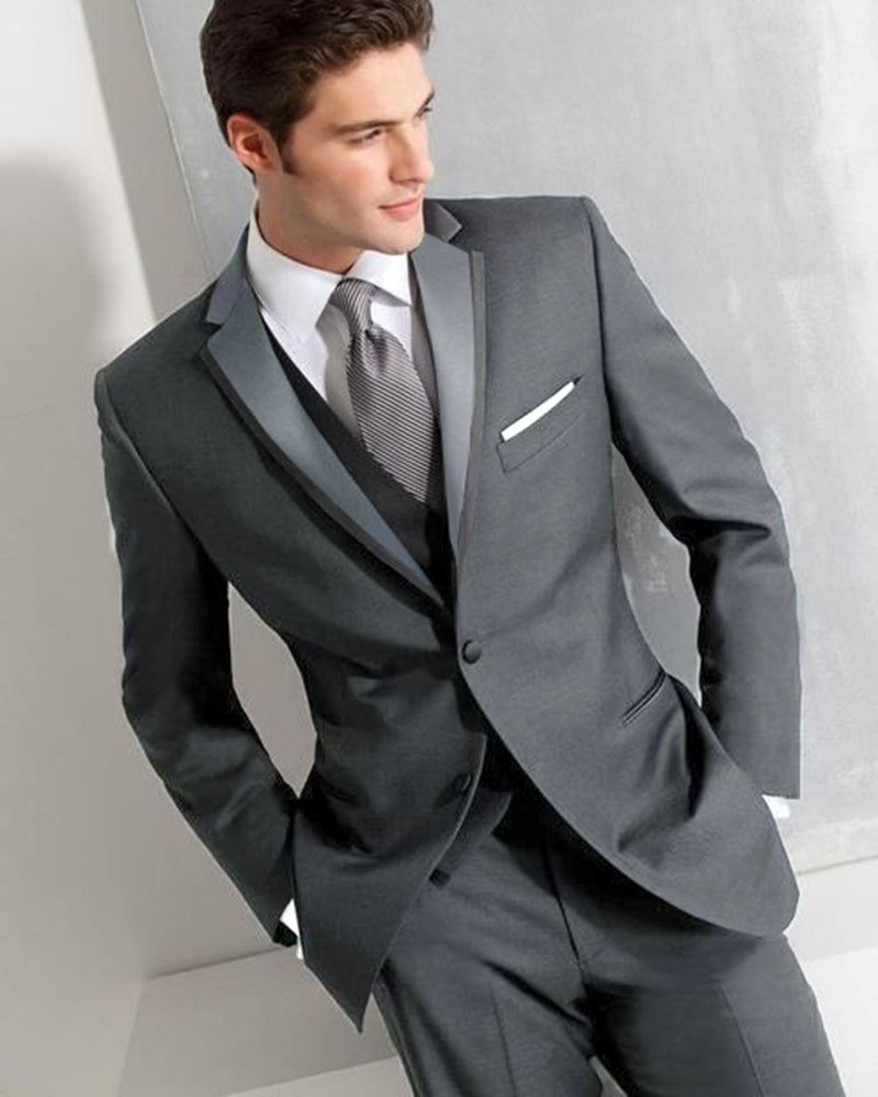 CB0415 2022 Dark Grey Groom Wedding Tuxedos Peak Lapel Two Buttons Prom Men Dress Suits 3 Pieces (Jacket +waistcoat+pants)0