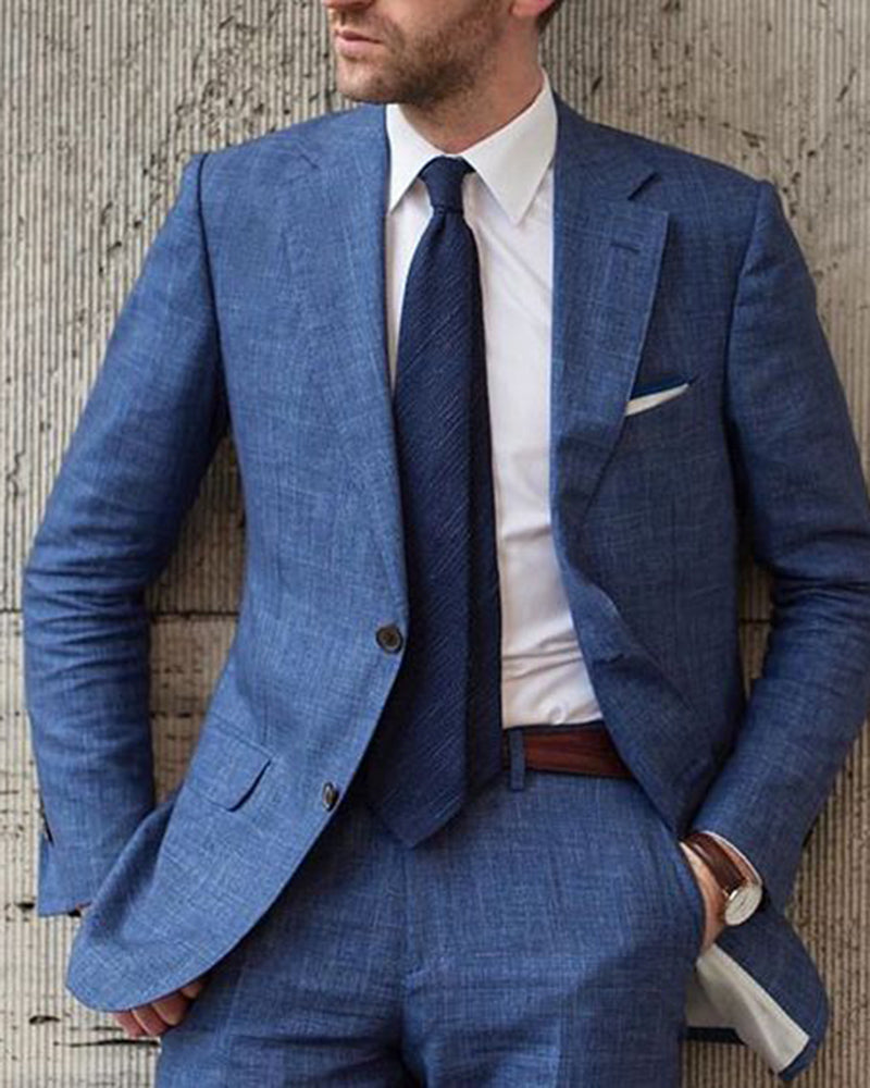 Navy Blue 2 Pieces Wedding Suits Lino Tweed Linen Suits for Men Business Summer CB0831