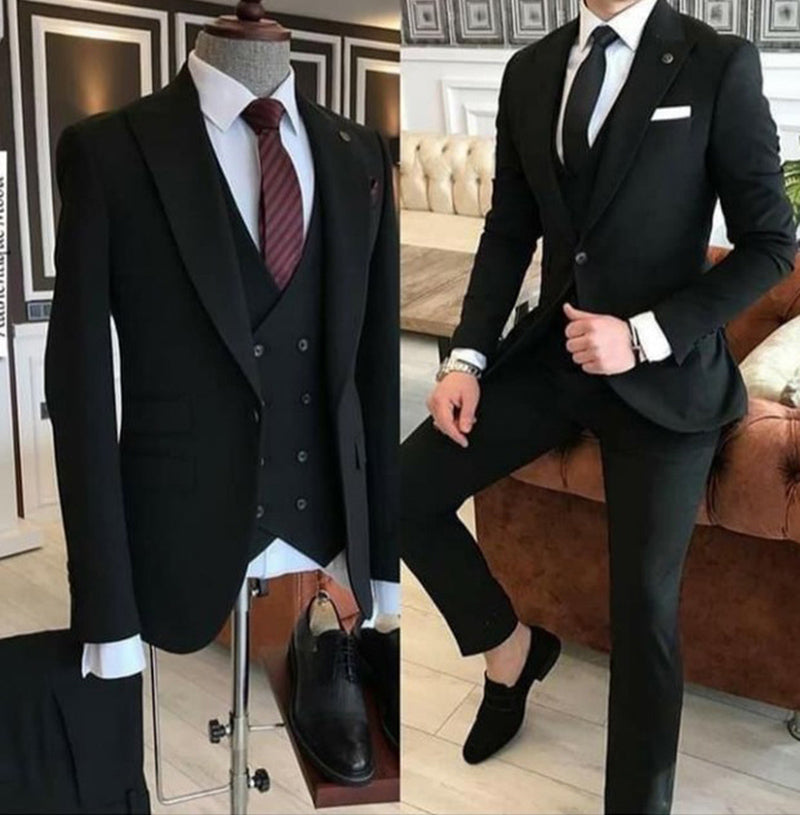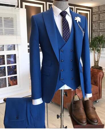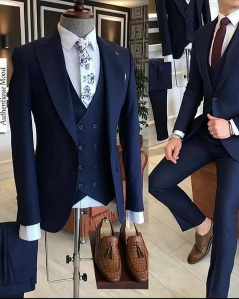Peak Lapel One Button Wedding Groomsmen Navy Blue Tuxedo Suits for Men 3 Pieces (Jacket+pants+vest) CB10704