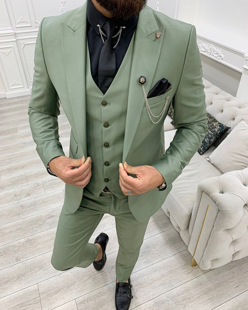 Peak Lapel Sage Green Prom Suits for Young Men Spring Groomsmen Wedding Suits for Men CB11125