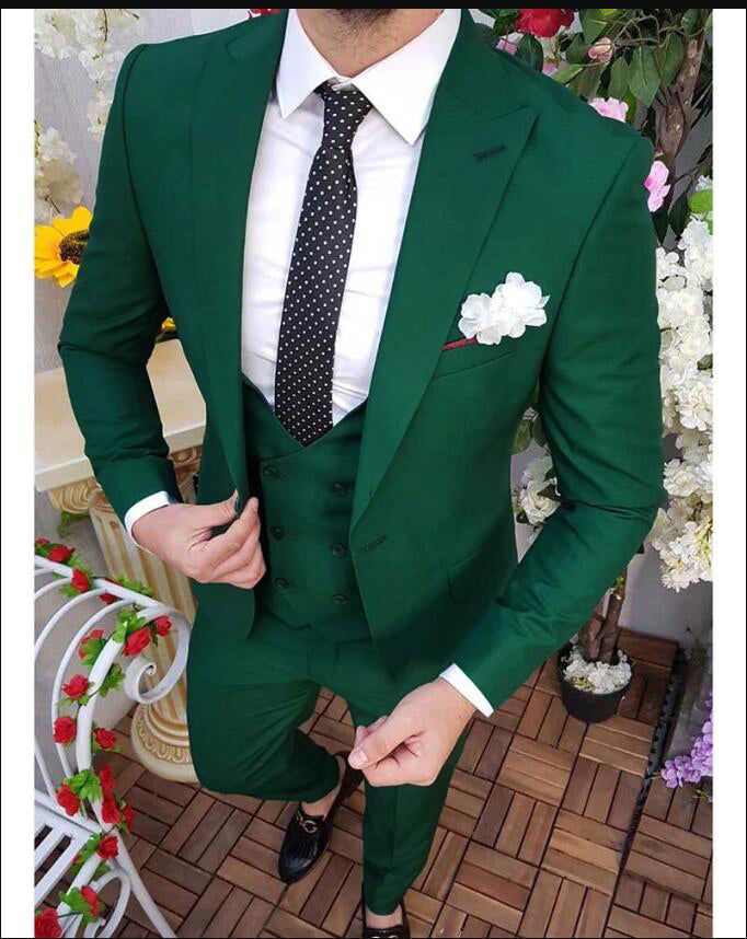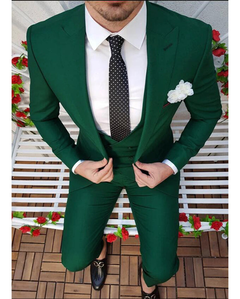 Solid Color Emerald /Forest Green Men's Prom Suits 3 Pieces Blazer Formal Wedding Suits Jacket outfits CB0819