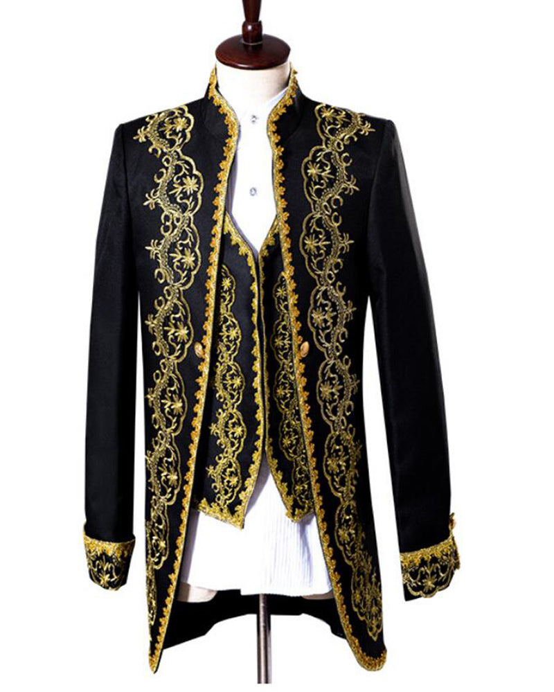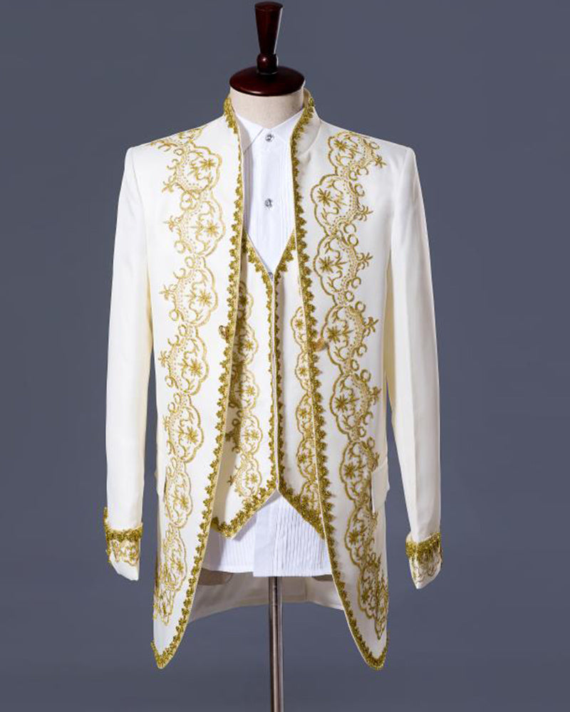 Classic Three Piece Embroidery Palace Stage Singer Wedding Suits Latest Coat Pant Designs Costume Homme