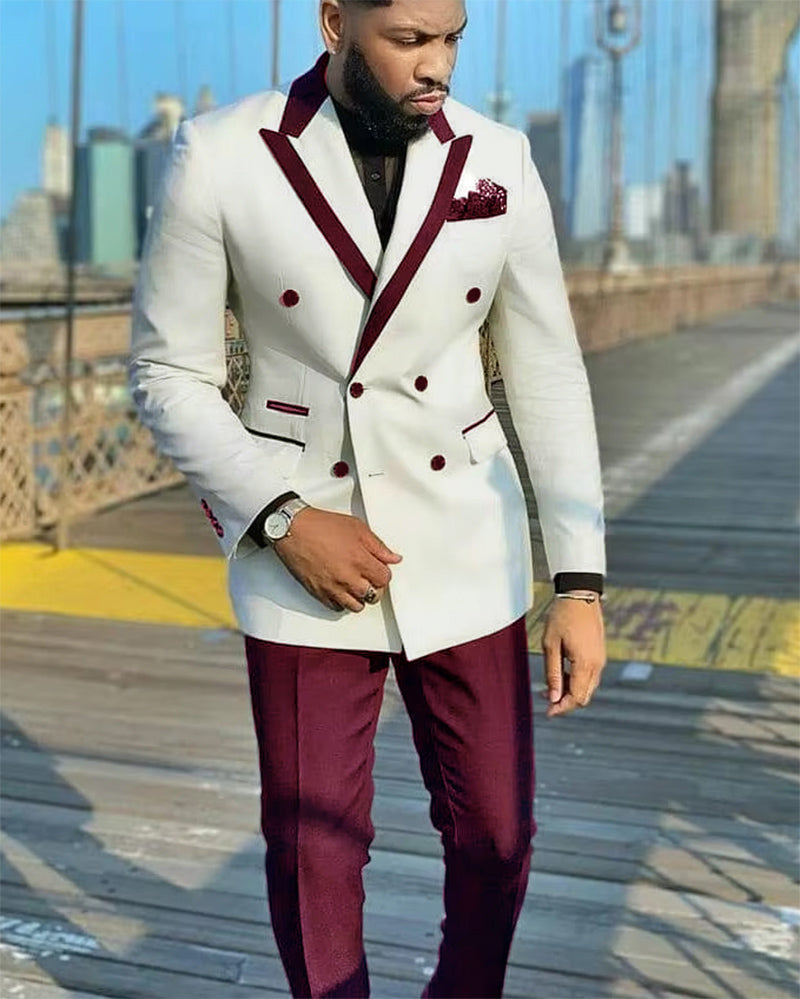 Classic White/Ivory and Burgundy Classic Wedding Tuxedos Double breasted Suits 2 Pieces CS5615