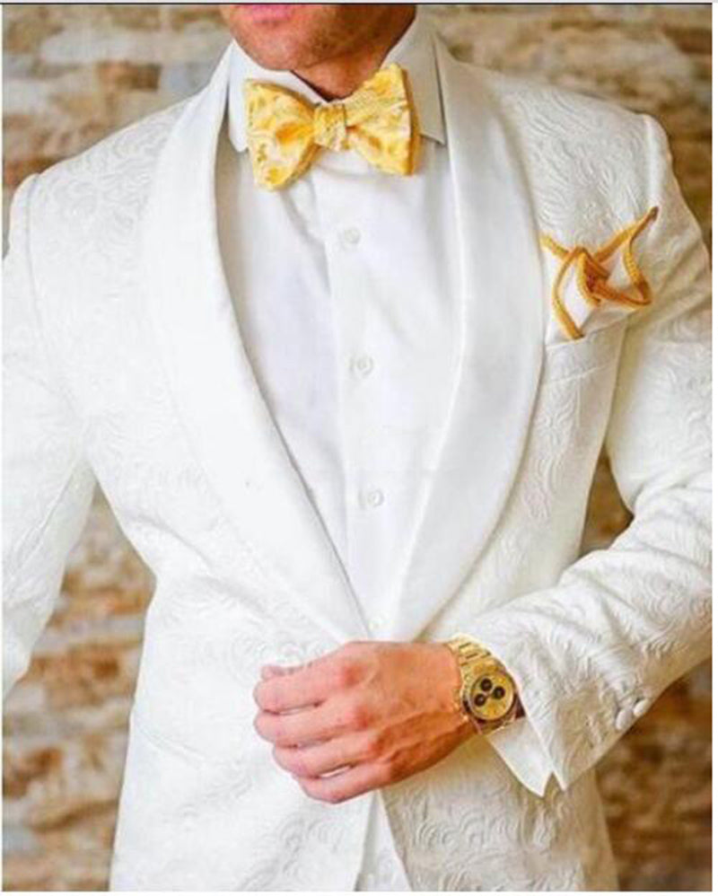 Slim Fit Shawl Lapel White/Ivory Groom Tuxedos Men's Wedding Suits 2 Pieces(Jacket+Pants) CB052810