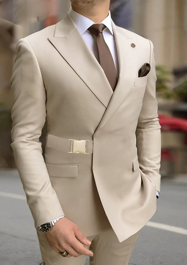 Trajes cruzados para hombre, color beige, 2 piezas, CS41029