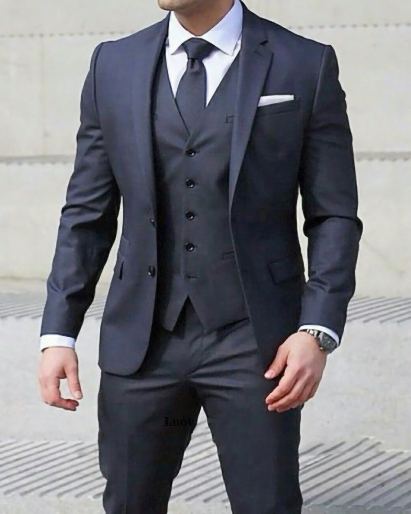Trajes de novio ajustados de 3 piezas en azul marino oscuro para boda, trajes formales de fiesta para hombres CB2628