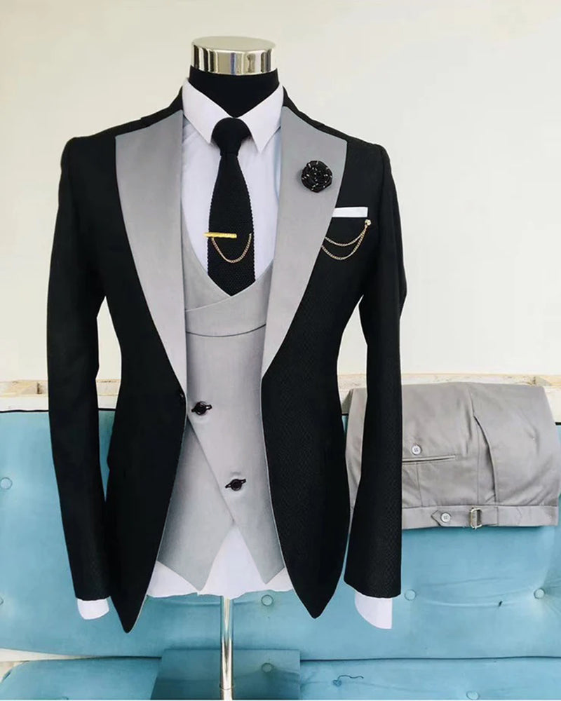 Trajes de fiesta negros y plateados, trajes de esmoquin de graduación para niños, atuendo de 3 piezas, ropa formal CB1011 (chaqueta + chaleco + pantalones)