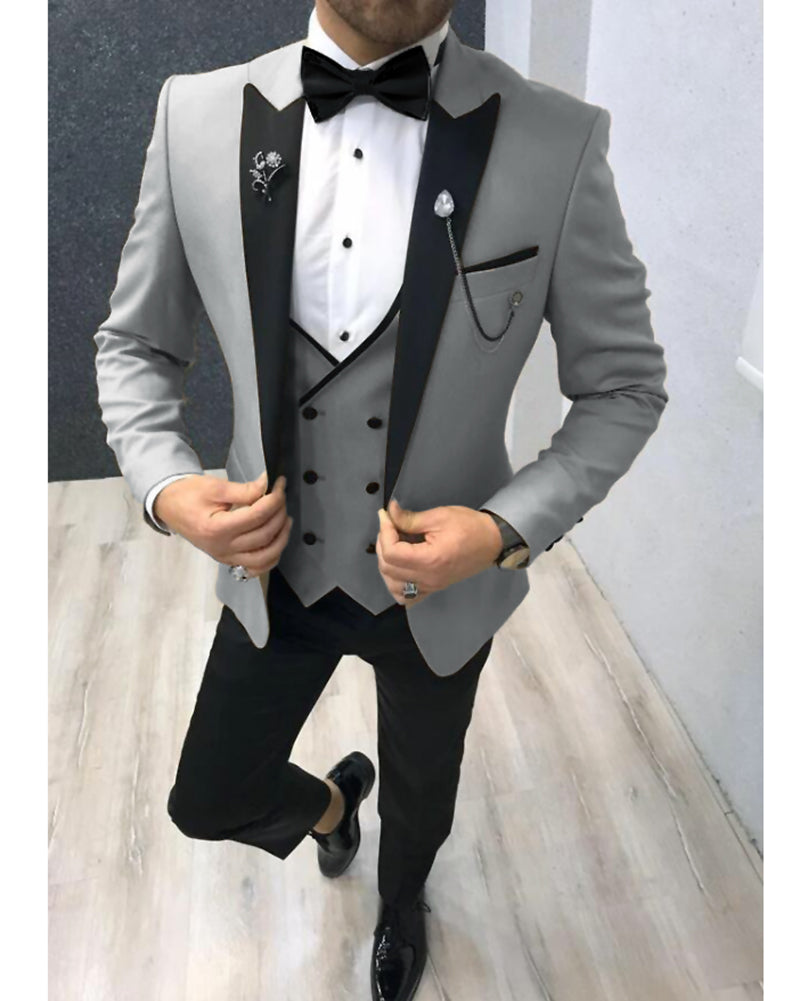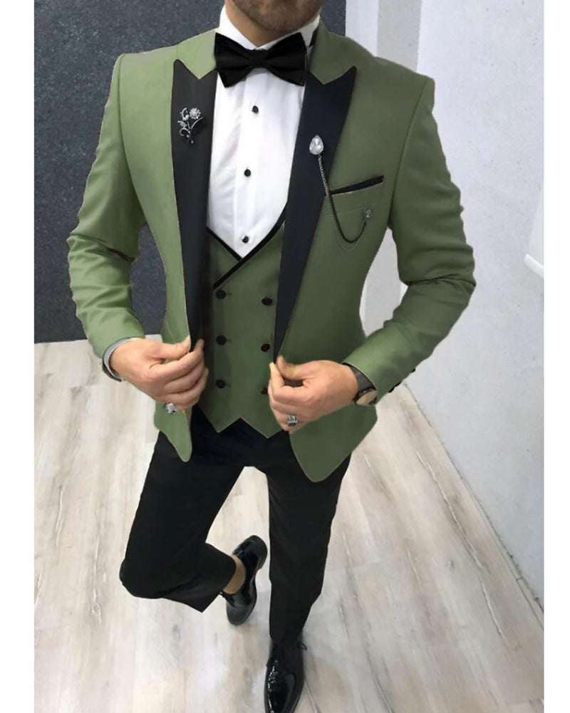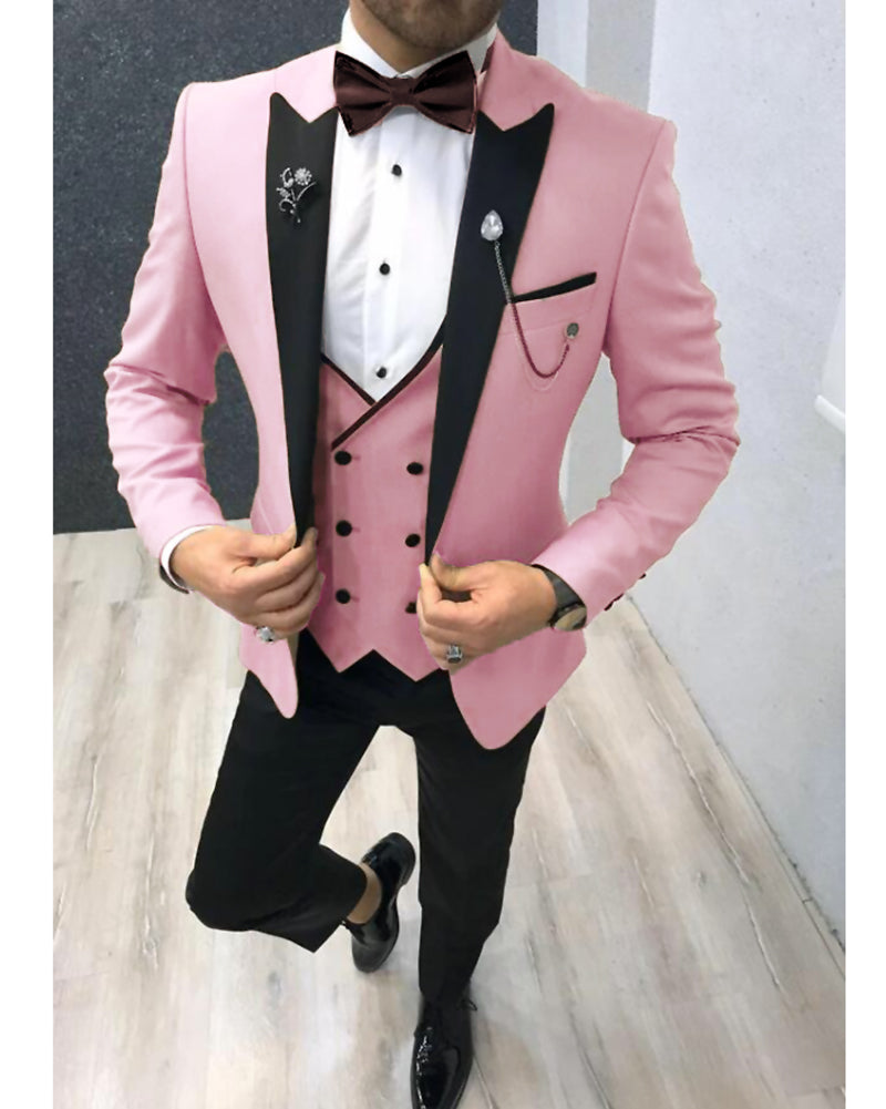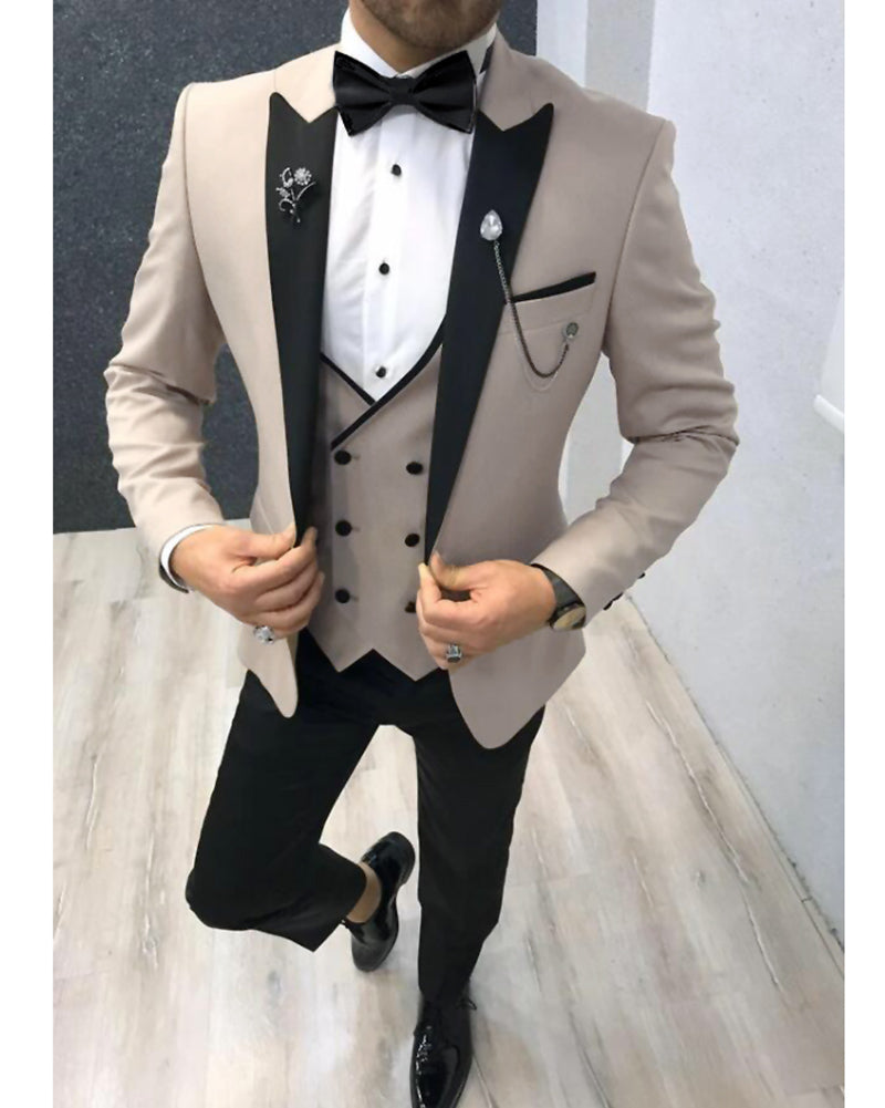Esmoquin de boda beige con solapa de pico, 3 piezas, para hombre, para fiesta de graduación formal CB0603