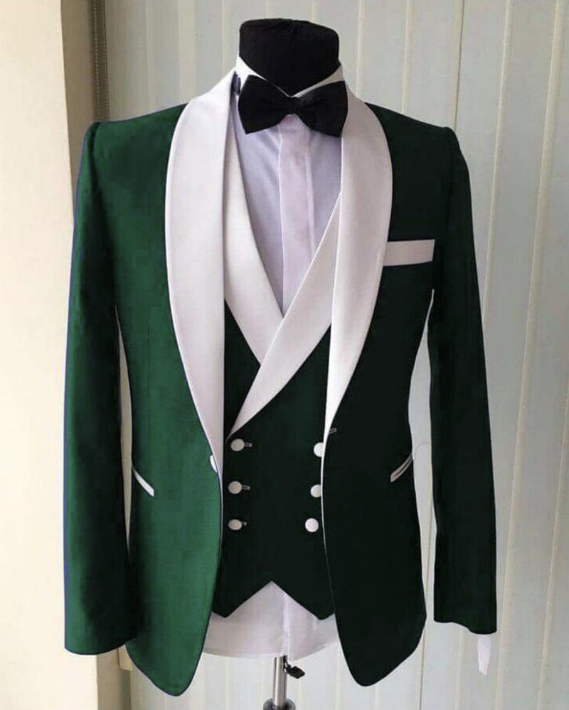 Traje de esmoquin verde oscuro para padrinos de boda, traje de 3 piezas para hombre (chaqueta + pantalón + chaleco)