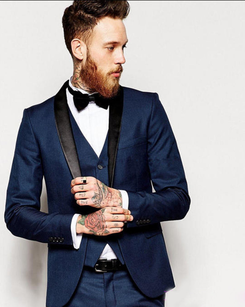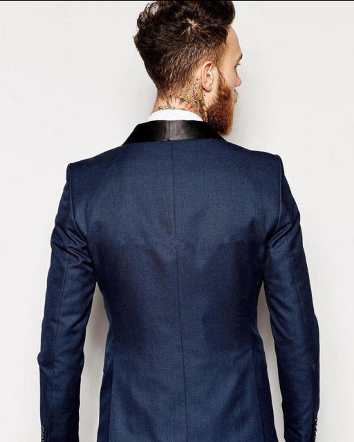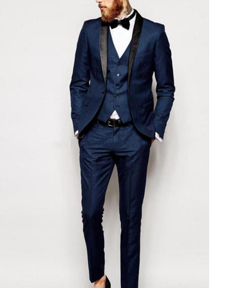 Traje de boda azul marino para novio, esmoquin con solapa chal, 3 piezas (chaqueta + pantalón + chaleco)