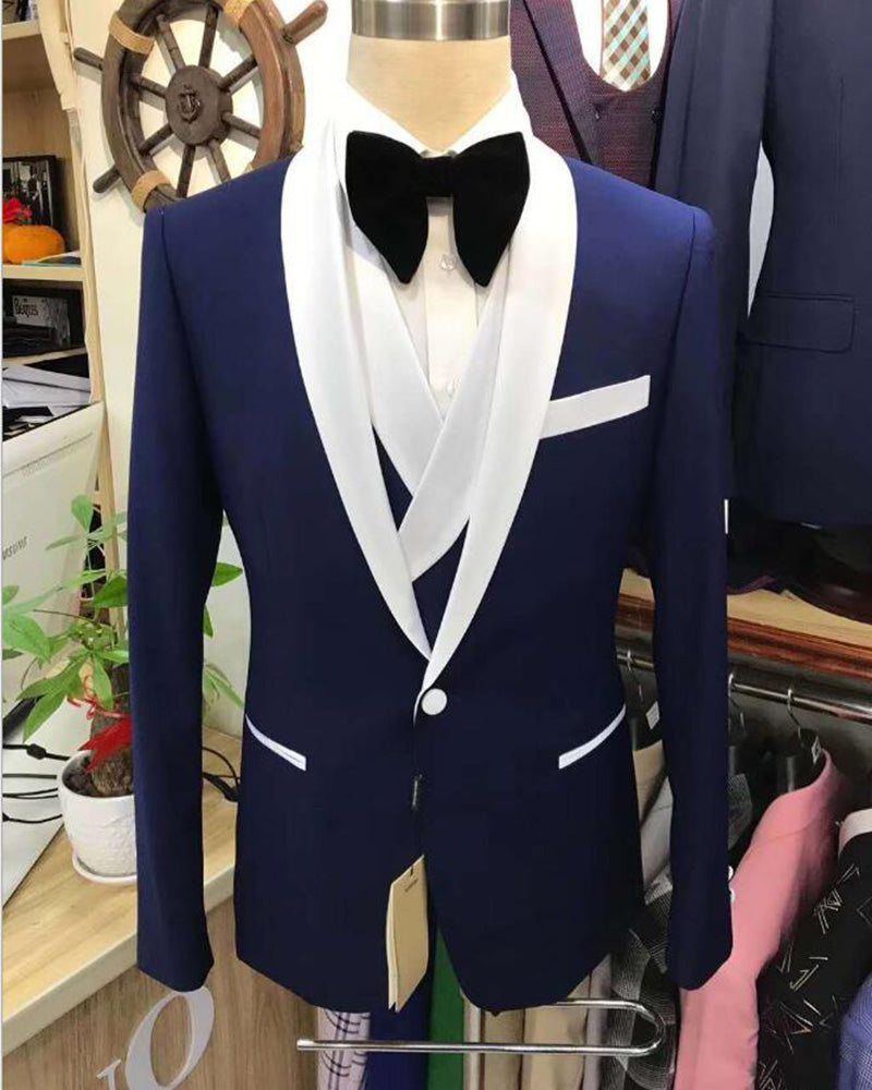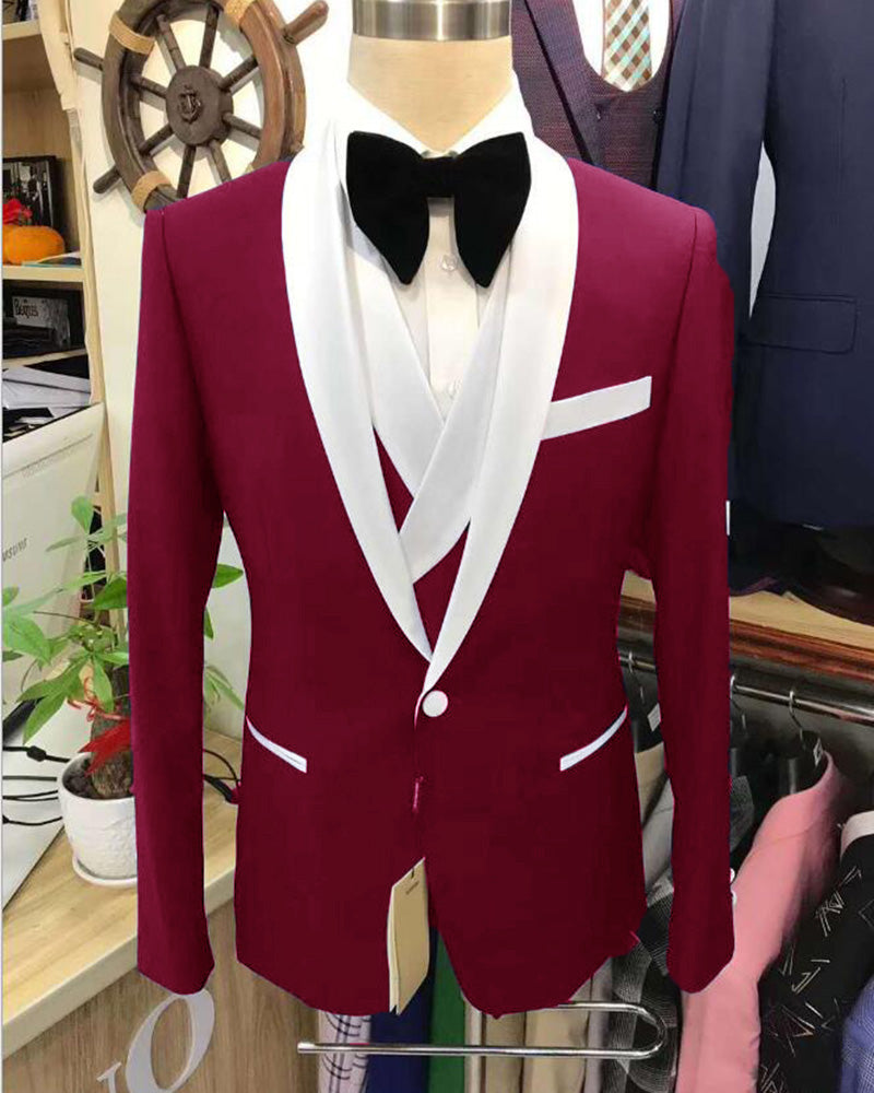 Traje de boda ajustado de 3 piezas azul marino/verde/burdeos para hombre, esmoquin para novio con solapa chal (chaqueta + chaleco + pantalones), trajes de fiesta para hombre CB01214