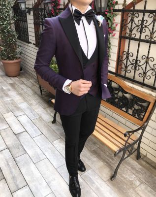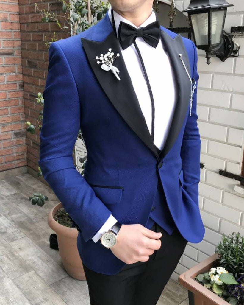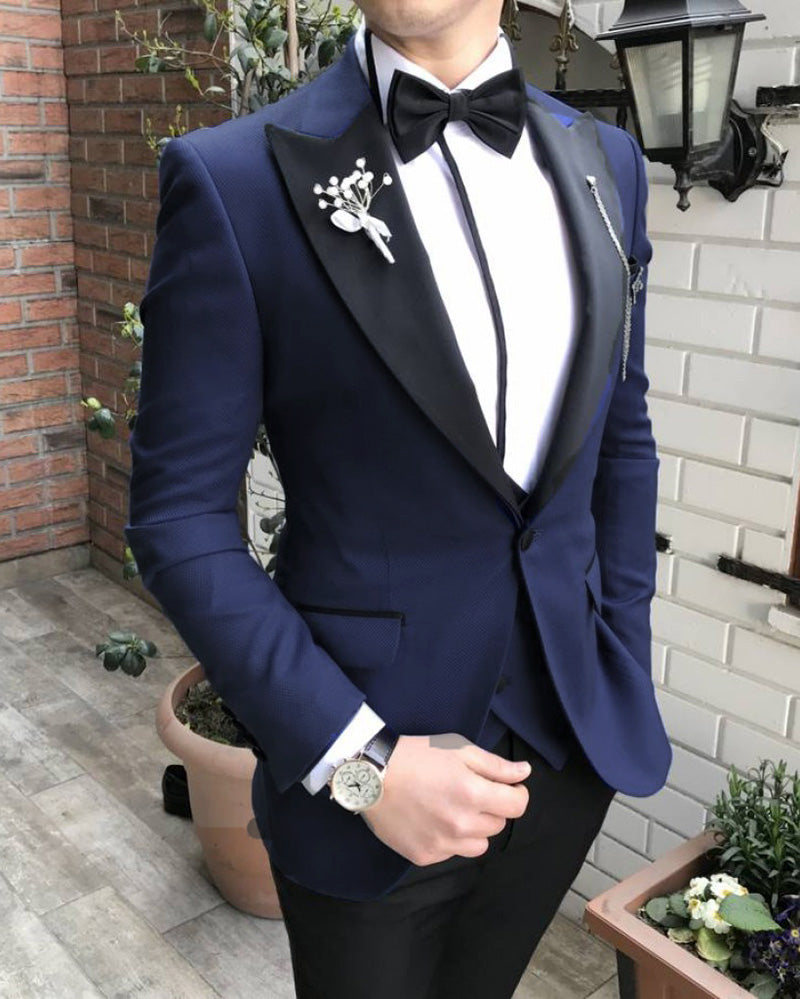 Traje de novio azul con solapa de pico, esmoquin de boda para hombre, 2 piezas (chaqueta blazer + pantalones)