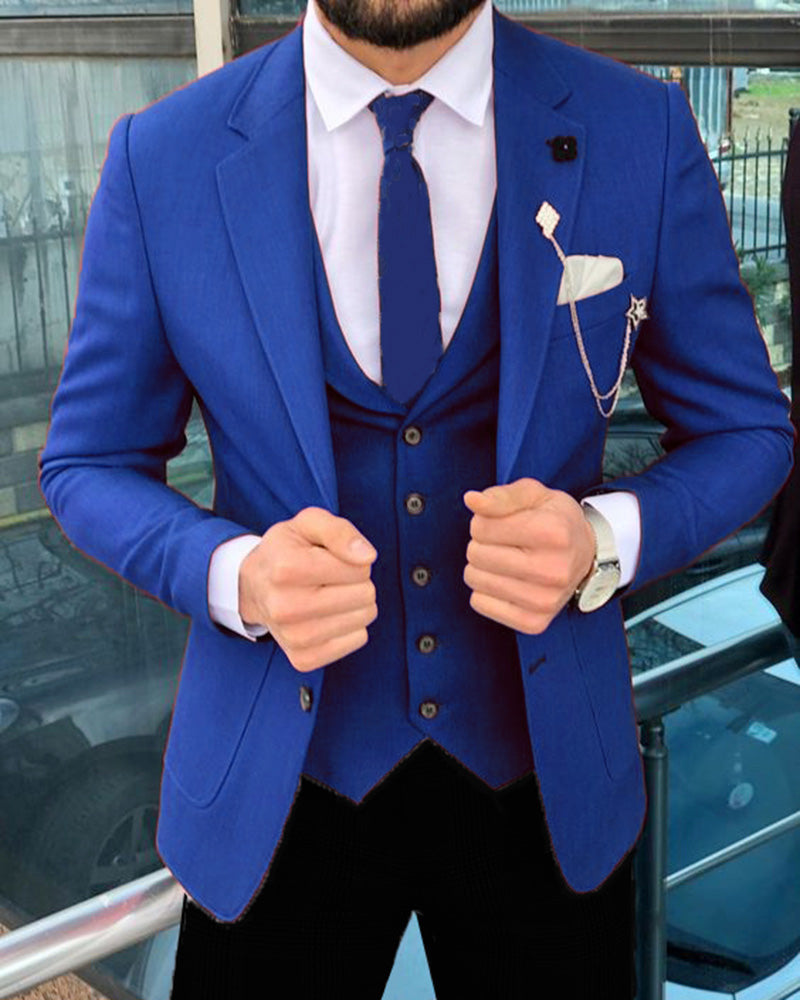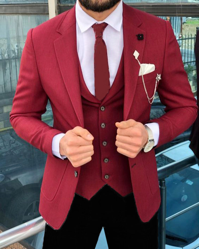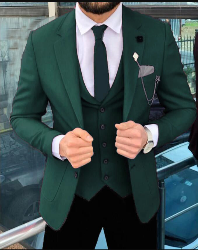Los mejores trajes de vestir para hombres o padrinos de boda en rojo, azul y verde, 3 piezas (chaqueta, cintura y pantalones)