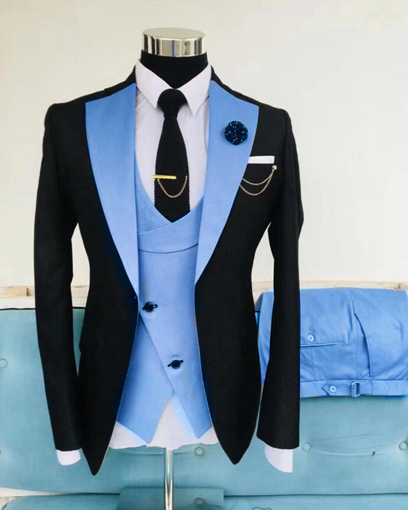 Trajes de novio para boda con solapa de pico en azul y negro para hombre, chaqueta formal para fiesta de graduación, blazer de 3 piezas (chaqueta + chaleco + pantalones) CB01213