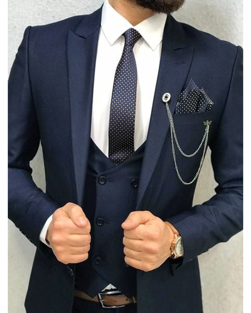 Trajes de boda para padrinos de boda clásicos en azul marino/esmoquin de 3 piezas (chaqueta + pantalón + chaleco) CB6688