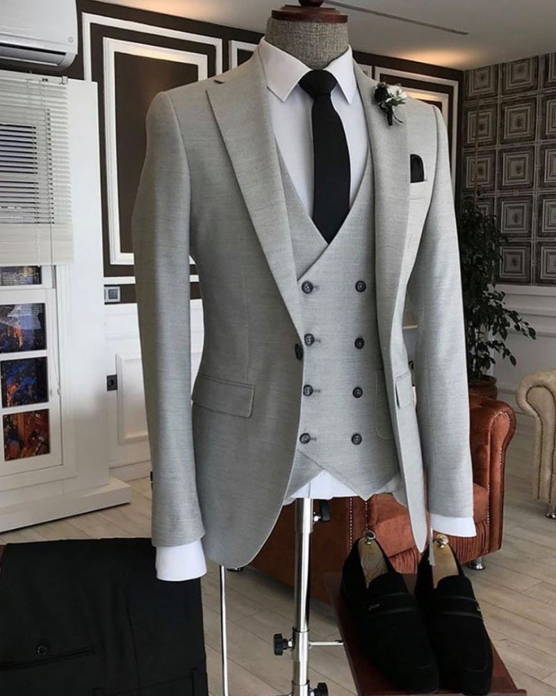 Traje de boda clásico de corte entallado de 3 piezas en color gris para hombre, traje formal con chaqueta CB108008