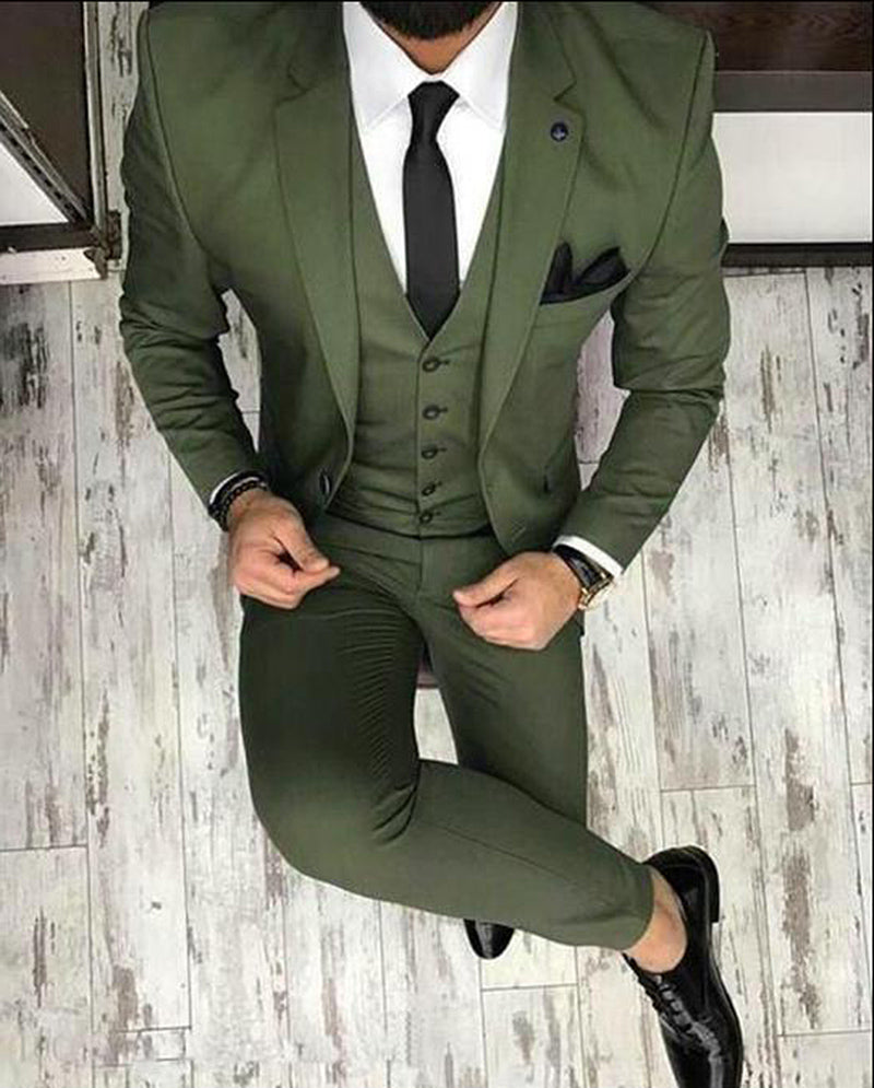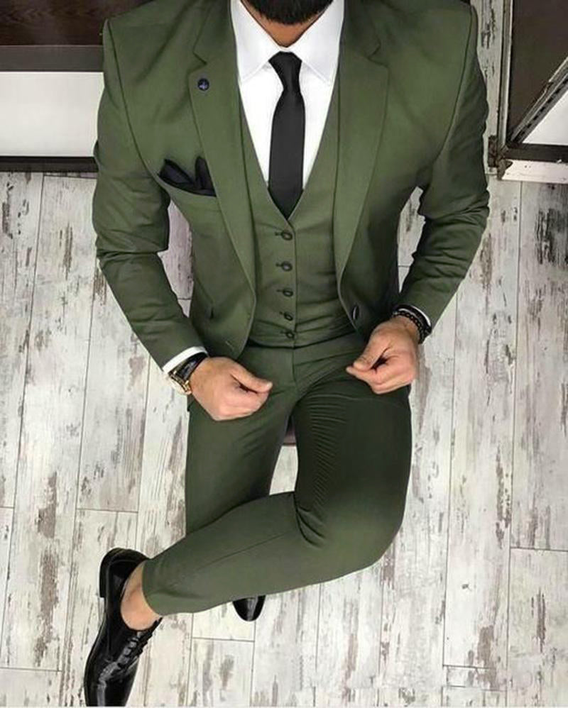 CB05141 Traje de 3 piezas para hombre color verde oliva/verde oscuro