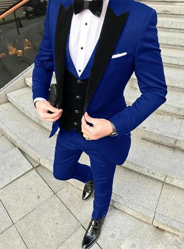 Esmoquin azul real/verde de terciopelo negro con solapa de pico, 3 piezas, esmoquin verde para fiesta de graduación para hombre, traje de chaqueta para boda CB10304