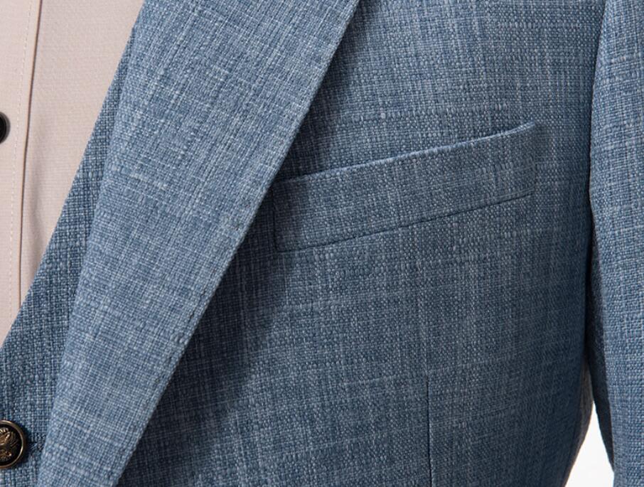 Traje de boda de lino azul para novio, para boda en la playa, blazer, 3 piezas (chaqueta + chaleco + pantalones) CB10326