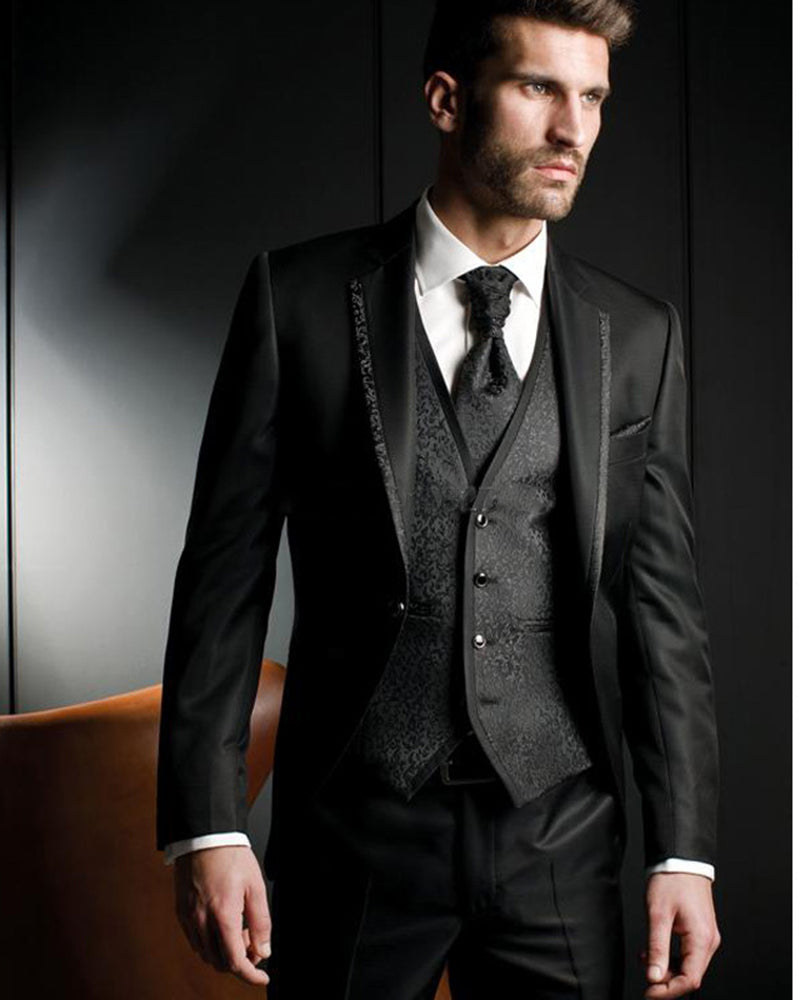Trajes de boda negros clásicos para hombres, esmoquin de novio, traje de 3 piezas CB10918